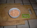 J'avais un peu peur que la tartinade soit forte avec le chorizo même avec du doux ... Finalement elle a été appréciée sur des toasts, dans des champignons fourrés ou avec des gressins. Le lendemain, elle avait un peu épaissi donc on a ajouté une goutte d'eau.