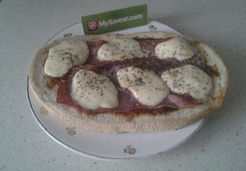 Une bruschetta au goût de pizza. C'est bon mais ça manque d'un peu de légumes. Épinards, champignons ou autre... Pour que ça gratine, j'ai laissé 10 min au four. L'ajout de sel n'est vraiment pas nécessaire.