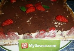 Recouvrir d'une couche de crème au mascarpone et de fraises. Répéter l'opération en alternant couche de biscuits, couche de crème et de fraises. Terminer par une couche de crème. Saupoudrer de cacao.