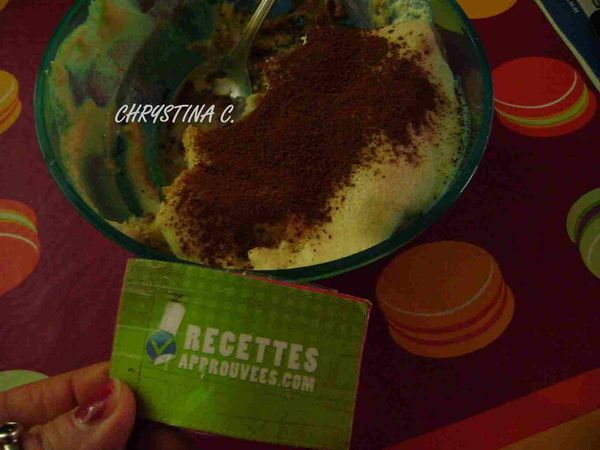 Par contre, j'ai pris du cacao de la marque Nestlé au lieu du traditionnel Vanhouten. Il est vraiment meilleur, et il se marie très bien avec la mousse du tiramisu, légère et juste bien dosé en sucre. En clair, tout le monde approuve à la maison votre recette ! - 18/20