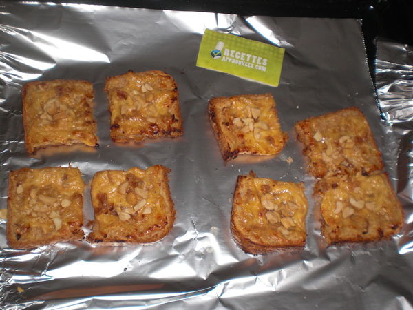 Bonne association entre les fromages et les oignons frits qui ont bien parfumé. Ce fut des toasts légers et croquants avec l'apport des noix de cajou. Une recette originale.