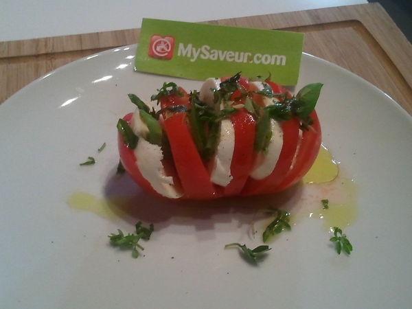 La tomate mozza c'est toujours une valeur sûre. L'originalité de cette recette c'est la présentation que j ai adopté depuis une recette similaire postée cet été. J'aurais aimé un assaisonnement plus original.