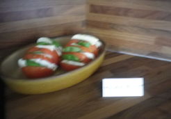Un classique qui manque ici d’être revisité pour un peu plus d’originalité. Quelques fines rondelles d’aubergine ou de courgette poêlées et placées entre les tranches de tomate et de mozzarella avec un peu de vinaigre balsamique auraient égayé le tout. La recette est certes très bonne mais elle n’apporte rien de plus que la version classique. Il me semble qu’il manque des ingrédients dans la liste.