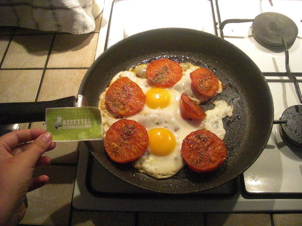 Le fait qu'il y ai que des tomates au fond de la poêle, on a pas aimé plus que cela. Il manque quelque chose de plus. Les oeufs sont bons dans la recette.