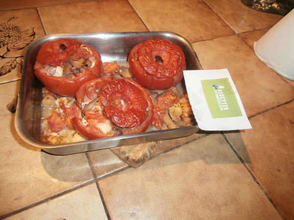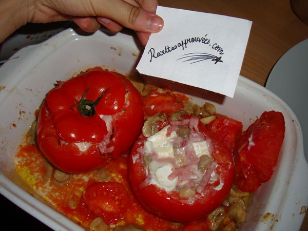 Moi, je dis bravo : ça change de la traditionnelle tomate farcie et ça a beaucoup de goût ! J'ai choisi la version aux lardons et j'ai dû rajouter des tomates car il me restait de la farce.