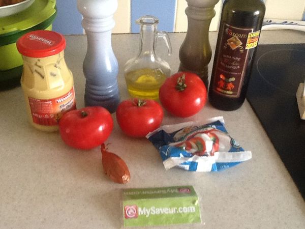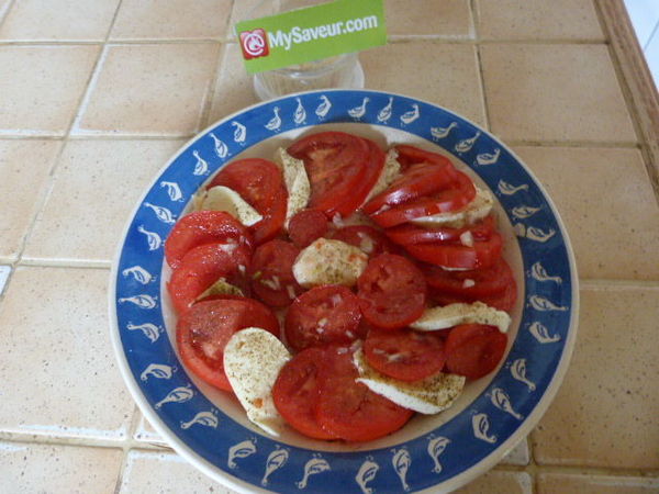 Très bonne recette, ça change de la tomate mozza à l'huile d'olive ! Les échalotes apportent du peps à l'ensemble.