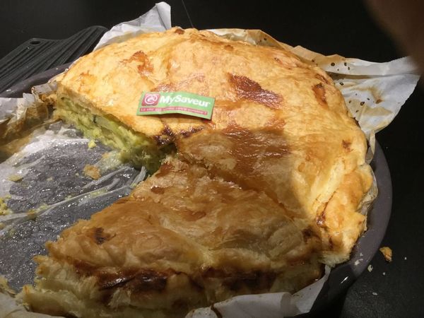 Très bonne recette testée avec pâtes feuilletées maison, du Roquefort et des courgettes jaunes. Les saveurs se marient bien. Je préfère la tourte froide. Merci pour la recette.