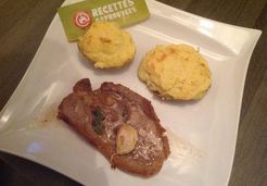 Préparer le gigot : saler chaque face des tranches. Écraser au presse-ail une gousse. Frotter les tranches de gigot avec, à la main.