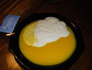 L'émulsion de chèvre se marie très bien à la soupe carottes/pomme de terre, il lui apporte de l'onctuosité. Un petit conseil : préparer l'émulsion bien avant pour qu'elle ne soit pas trop liquide.