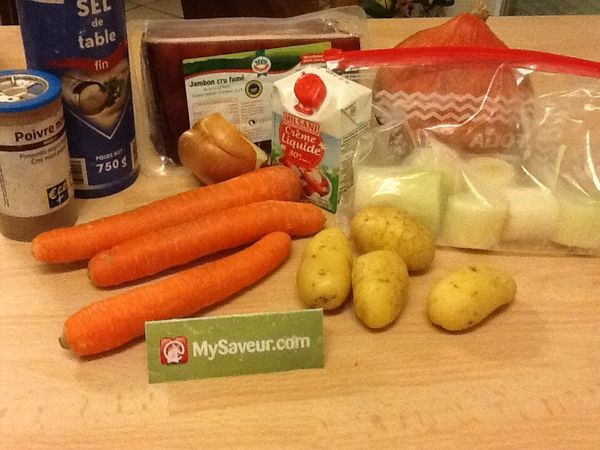 Excellent potage. Le goût du jambon fumé ressort bien et s'allie avec les autres parfums. J'ai utilisé du potiron en bocal