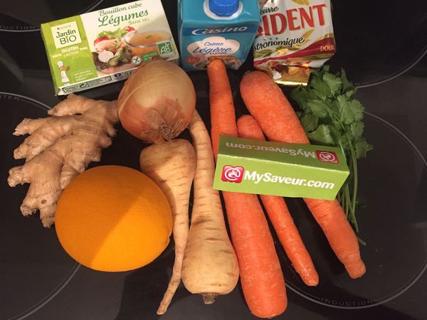 Ajouter le gingembre, le zeste d'orange, le bouillon cube et 400 g d'eau. Mélanger.