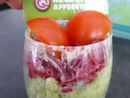 Nous avons beaucoup aimé. J'ai trouvé ces verrines extra !!! J'ai beaucoup aimé le côté sucré/salé ! Par contre, en cette saison je n'ai pas trouvé de tomates cerises bio du coup j'en ai pris une normale que j'ai coupé en quartiers.