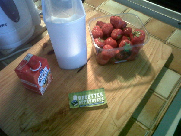 Alors simple à faire, sympa au goût, mais ma crème fraîche n'a pas pris le goût de la fraise, peut-être que les fraises n'étaient pas assez écrasées, je ne sais pas. Dommage, trop le goût de crème fraîche, pas assez goût de fraise.