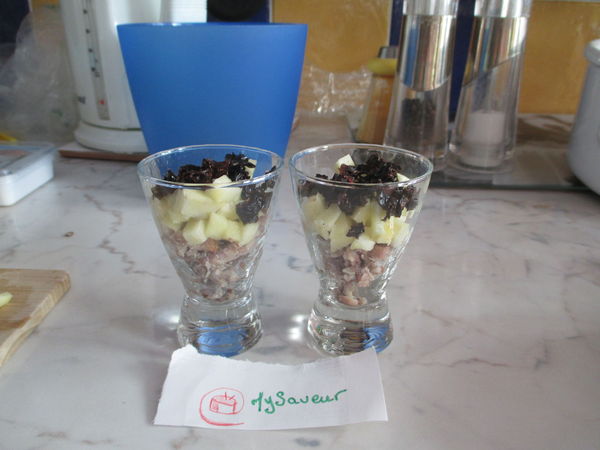 Verrines vraiment simples, rapides à réaliser ! Le mélange un peu sucré-salé et frais rend la verrine très bonne. C'est presque dommage de ne pas mélanger les tomates séchées avec la sardine.