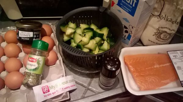 Couper en cubes le saumon et la courgette.