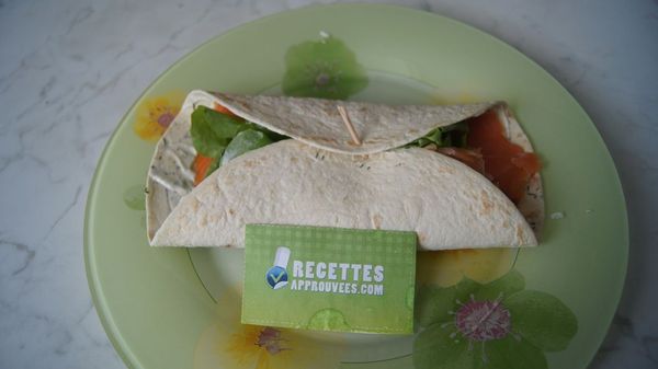 Bon wrap, cela change du saumon accompagné de toasts! Recette bonne et rapide à réaliser.