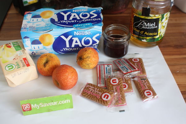 Déposer les pommes cuites et le Yaos préalablement mélanger avec une cuillère (pas fouetté). Vous pouvez ajouter du sucre si vous n'aimez pas manger les yaourts ou fromage blanc non sucré.